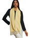 Seine Maße von etwa 180–200 cm Länge und ca. 30 cm Breite (ohne/mit Fransen) bieten vielseitige Stylingmöglichkeiten – ob locker um den Hals geschlungen, elegant über die Schultern drapiert oder lässig als Stola getragen. Die dezent gedrehten Fransen verleihen dem Schal ein feminines Finish mit klassischem Charme.